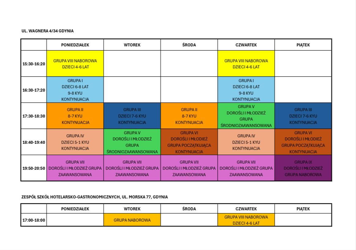 DOJO ZACHÓD – grafik zajęć .